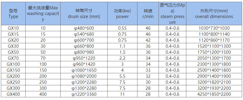 一、工業洗衣機主要技術參數(Main Technical specifications)